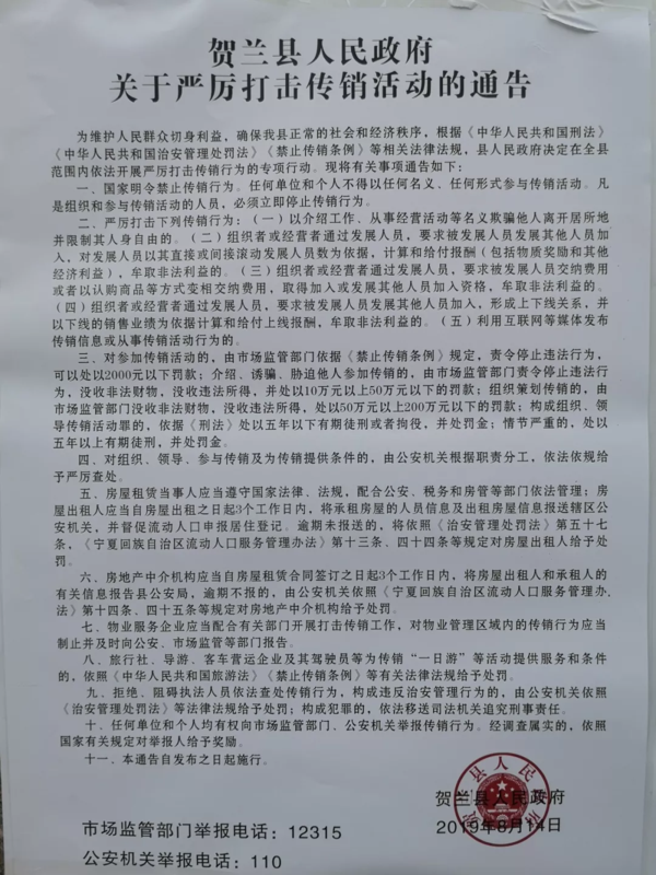 賀蘭縣召開深化打擊傳銷專項整治行動工作部署會議