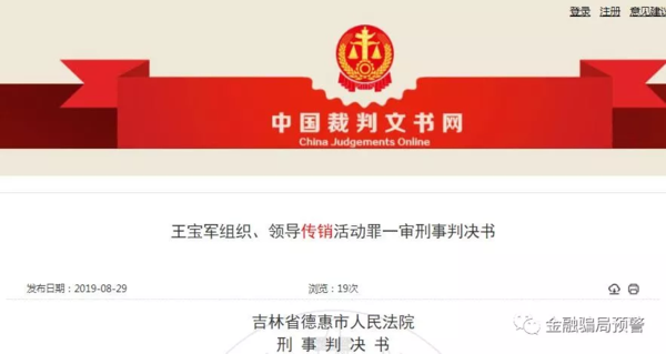 2019年3月25日,王寶軍因涉嫌組織、領(lǐng)導(dǎo)傳銷(xiāo)活動(dòng)罪,被陜西省寶雞市金臺(tái)區(qū)民警抓獲,同年3月29日被德惠市公安局解回并刑事拘留。