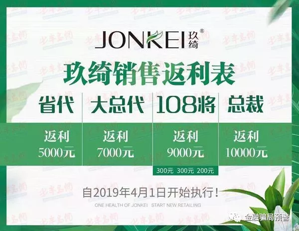“玖綺蘋果樹的分級模式,從低到高層次分明,每一級拉到新單或發(fā)展了下線,對應(yīng)的那一條線上的所有上級都有錢拿?!眲⒚鄹嬖V記者,其中市代理刷單是9800元,不參與任何的返利分成。之后刷單3.6萬元成為省代,大總代名下需要6單(每單3.6萬元),108將名下21單,超過100單則升級為“中國區(qū)總裁”。“一般情況下,每單3.6萬元中,會拿出1.08萬元返利,層層分配,從拉到人頭的省代到最后的董事,每個級別分成幾千元,保證都有‘肉’吃?!眲⒚鄹嬖V記者,玖綺的數(shù)千位代理商中一大半屬于底層,拉不到人頭完不成推介,這種模式和傳銷如出一轍,都是發(fā)展下線拉人頭為主。