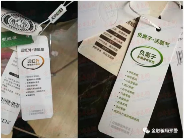 玖綺對于自己產(chǎn)品的定位近乎“全能”,通過其一款養(yǎng)生衣的標(biāo)簽宣傳中看到,對外宣稱為“亞健康的終結(jié)者”,能打通經(jīng)脈、疏通身體、促進(jìn)代謝、排除毒素十余項功能。此外,玖綺的官方公眾號“JONKEI玖綺”對方對外聲稱技術(shù)上得到中國人體研究實驗室、能量監(jiān)控研究中心的支持,但無法查詢到以上研發(fā)中心的信息?!熬辆_非常善于扯大旗,宣稱自己有研發(fā)中心,有生產(chǎn)基地,規(guī)模龐大,但實際上這些都沒有?!眲⒚鄹嬖V記者。