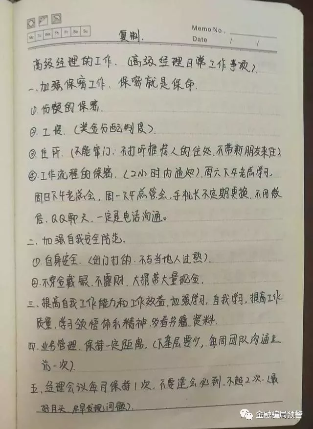 錫山警方查獲的傳銷資料 該傳銷組織實行“五級三階制”傳銷模式,人員等級分為業(yè)務員、業(yè)務組長、業(yè)務主任、業(yè)務經(jīng)理、高級業(yè)務員(即“老總”)。并按參加者級別、發(fā)展下線的多少以及下線購買“份額”的多少,以三大獎金的方式支付提成。 通過三個多月偵查后,9月4日晚上,錫山區(qū)民警跟蹤該傳銷團伙“區(qū)長”葉勇來到高速公路口,趁著葉勇排隊準備上高速公路,將其抓獲。9月5日凌晨,錫山區(qū)警方出動700余名警力,分成107個抓捕組,對散居在錫山區(qū)各個小區(qū)的特大傳銷犯罪團伙開展集中抓捕行動。 當場抓獲各層級傳銷人員200余人,其中老總9名,職能總管、大總管以上級別42名,搗毀傳銷活動窩點116個,并查獲大量宣傳資料、書籍、視頻光盤等傳銷物品,涉案金額高達2000余萬元。 上述34名被告人也在這次行動中,紛紛被公安機關(guān)抓獲,各被告人歸案后,均如實供述上述主要事實。 “2017年8月,我們陸續(xù)從南京市分流至無錫市錫山區(qū)水岸佳苑、紫汀苑、碧桂園、大誠苑等小區(qū)開展傳銷活動并發(fā)展下線。我們加入后,通過發(fā)展各自下線,提升在組織中的級別?!鄙鲜龈鞅桓嫒斯┦觥?/span> 金融騙局預警還了解到,該傳銷團伙具體由區(qū)長、總監(jiān)等領導整個區(qū)域的工作,并將人員分散到各“大家庭”進行管理,每個“大家庭”設有直接老總、老總、大總管,大家庭下設能力、能力配合、自律、自律配合、經(jīng)晨、申購6個職能總管,由直接老總聯(lián)系大總管,大總管通過職能總管統(tǒng)管整個“大家庭”,再由總監(jiān)、老總通過召開“老總”會議、“總管”會議、經(jīng)理傳達會、家庭會議等會議,傳達該傳銷組織關(guān)于組織管理等方面的精神,各個“大家庭”交叉互動,互相監(jiān)督學習。