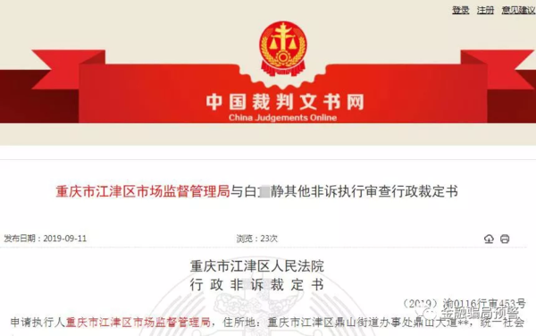 7月11日,江津區(qū)市監(jiān)局向江津區(qū)人民法院申請(qǐng)強(qiáng)制執(zhí)行該法院對(duì)白某靜等17人涉嫌傳銷資金予以凍結(jié)的決定。江津區(qū)人民法院受理后,依法對(duì)申請(qǐng)執(zhí)行的具體行政行為進(jìn)行了書面審查。