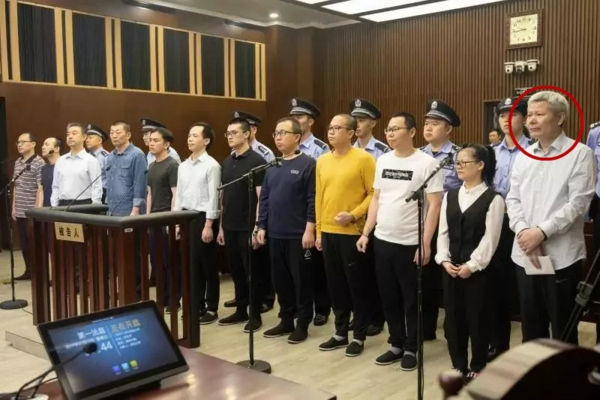 “善林金融”集資詐騙案庭審現(xiàn)場。右一為周伯云。