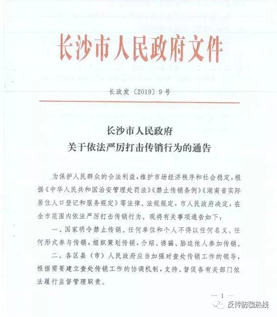 長(zhǎng)沙市人民政府關(guān)于依法嚴(yán)厲打擊傳銷行為的通告