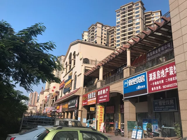 ▲北部灣大道上頗有名氣的陽光海岸樓盤,樓盤商業(yè)街的左側(cè)房產(chǎn)中介以及裝飾建材商鋪聚集 吳俊捷攝