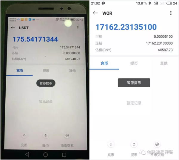 就在金融騙局預(yù)警截稿時,Wotoken的各個維權(quán)群正在瘋傳一條Wotoken宣布正式關(guān)閉的信息。該條信息稱,“尊敬的woex用戶,感謝您一直以來的支持與鼓勵,我們有幸在woex上線以后割到足夠的金額,目前由于BJ人數(shù)夠多,暫停任何交易,woex2019年10月12號晚8:00宣布正式關(guān)閉任何交易,接受調(diào)查!”該消息傳出后,很多被騙者嘗試提幣均顯示“暫停提幣”。