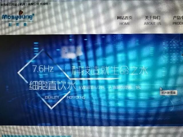 這個公司還有官方網(wǎng)站,在網(wǎng)站首頁一款功能儀的圖片處于顯眼位置,宣傳的文字是“7.6Hz細(xì)胞直飲水,粘度降低622倍,人體吸收提高三倍”。語焉不詳?shù)摹肮竞喗椤敝?,它宣稱與美國某公司合作,卻把英文名字拼寫錯誤。