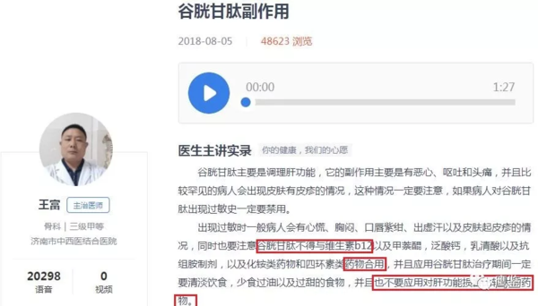 另外,很多主治醫(yī)師在網(wǎng)上回答網(wǎng)友的提問時(shí)稱,“谷胱甘肽在臨床上主要是用于肝病的治療。但是也有部分的患者可能出現(xiàn)不良反應(yīng),嚴(yán)重的患者也有可能出現(xiàn)過敏性休克。長期使用,還會(huì)有一些不良反應(yīng),所以不能長期服用。多位醫(yī)師還提到谷胱甘肽還應(yīng)當(dāng)避免和維生素B12等一起應(yīng)用,否則會(huì)出現(xiàn)不良反應(yīng)或者是影響藥物的臨床效果。