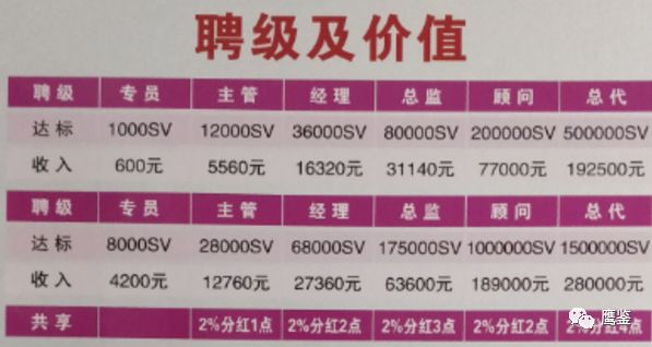 “尚朋高科”的會(huì)員除了上述高額回報(bào)外,如果發(fā)展下線還有工資(業(yè)績獎(jiǎng))和分紅獎(jiǎng)?!吧信蟾呖啤备鶕?jù)會(huì)員發(fā)展下線繳納費(fèi)用的累計(jì)額,逐級(jí)晉升為主管、經(jīng)理、總監(jiān)、顧問、總代六個(gè)級(jí)別。每個(gè)級(jí)別除了600元到28萬元不等的業(yè)績獎(jiǎng)外,每個(gè)月還享有不等數(shù)量的股點(diǎn)分紅。如果連續(xù)消費(fèi)兩年,就可以終身享受分紅。