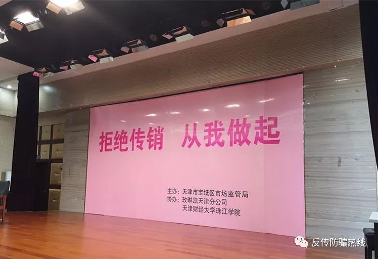 發(fā)表時間:2019-12-12 19:58作者:李旭反傳銷團隊來源:李旭反傳銷團隊 為引領(lǐng)廣大師生認清傳銷的違法犯罪性質(zhì),欺詐本質(zhì)和傳銷危害,進一步增強廣大師生識別傳銷的防范傳銷的能力,切實扎起校園防范傳銷的籬笆,12月11日,天津市寶坻區(qū)市場監(jiān)督管理局走進天津財經(jīng)大學珠江學院開展反傳銷進校園宣講活動。 李旭老師受市場監(jiān)督管理局邀請,與天津市財經(jīng)大學珠江學院學生及區(qū)市場監(jiān)管局工作人員共計140人參加了此次活動。 活動現(xiàn)場,天津?qū)氎鎱^(qū)市場監(jiān)督管理局工作人員就什么是傳銷,傳銷的危害,新型傳銷的模式,如何識別傳銷等內(nèi)容進行介紹,李旭老師就近期勸說解救的典型大學生陷入傳銷案例進行詳細分析講解,以案說法揭露傳銷的騙人手法、剖析傳銷的本質(zhì),幫助師生們識別和防范傳銷。 天津?qū)氎鎱^(qū)市場監(jiān)督管理局工作人員提到,傳銷是一種嚴重的違法犯罪行為,不僅擾亂市場經(jīng)濟秩序,而且嚴重損害群眾生命財產(chǎn)安全,危害社會和諧穩(wěn)定。大學生雖有較高的專業(yè)文化知識水平,社會認知和自主意識較強,但社會實踐經(jīng)驗相對不足,防范不法行為侵害的能力比較弱,特別是在當前就業(yè)形勢比較嚴峻的情況下,一些傳銷組織利用大學生涉世不深和急于就業(yè)的心里,打著職業(yè)介紹、招聘兼職等幌子利用、欺騙高校大學生,致使高校大學生誤入傳銷陷阱的情況時有發(fā)生。大家應認清傳銷本質(zhì),參與到打擊傳銷的隊伍中來。