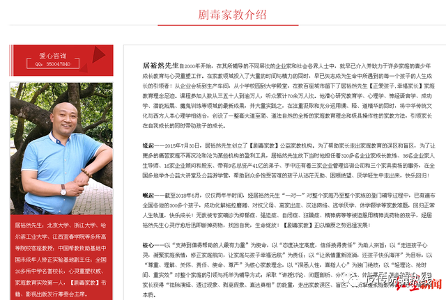 “大愛無疆”稱有一套自己的精神邏輯,其中“扒皮”和“喝湯”是兩大特色。居裕然在文章中戲稱的“竹片噼啪湯”,即用戒尺懲戒孩子。多段音頻、圖片顯示,孩子在營地內(nèi)被毆打、命令下跪磕頭。據(jù)了解,其一期游學(xué)營的費用為12萬元。 此前,居裕然在接受采訪時回應(yīng),“大愛無疆”不是醫(yī)療機構(gòu),他也不是醫(yī)生,他們是一個大家庭,給了孩子們成長的方向,給了父母正確教育兒女的方法?!皣栏駚碇v我們不是治療抑郁癥,因為在我的人生詞典里,除了腦子受外傷引起的精神疾病之外,其他的都不是病。孩子們沒有抑郁癥,沒有精神病。那都是專家定的。” 紅星新聞采訪報道時,“大愛無疆”新一期的游學(xué)營正在江蘇鹽城進行。5月2日凌晨,一位正在參與游學(xué)營的學(xué)員告訴紅星新聞記者,他在游學(xué)營內(nèi)被用木尺懲戒,趁家人不注意從營地離開,前往當(dāng)?shù)嘏沙鏊鶊缶?/span> 隨后,紅星新聞記者從鹽城市鹽東派出所值班民警處獲悉,卻有一個未成年人到派出所進行報案,孩子當(dāng)天被監(jiān)護人帶走,派出所已經(jīng)立案。今日(5月7日)紅星新聞記者再次致電鹽東派出所,一名民警稱,目前案件不好做回復(fù)。 5月7日,紅星新聞記者以家長身份進行咨詢,杭州裕然文化傳播有限公司一位工作人員稱,不清楚公司未來招生的措施。居裕然則表示,“現(xiàn)在社會上眾說紛紜,我之后不再參與,不再收學(xué)員了。”但是據(jù)相關(guān)學(xué)員講述,5月6日上午,居裕然在一個家長群里說“‘大愛無疆’不會停止,公眾號上會繼續(xù)推送。” 紅星新聞記者 潘俊文 藍婧 實習(xí)生 郭懿萌 |