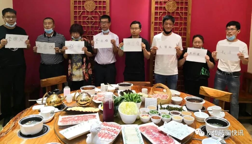 發(fā)表時間:2020-05-11 18:39作者:反傳防騙快訊來源:反傳防騙快訊 廣西北海警方在一羊肉火鍋店內(nèi)將正在舉辦“見總宴”的一伙涉嫌傳銷人員“一鍋端”,現(xiàn)場查扣涉?zhèn)鞲呒夀I車、黃金手飾、銀行卡、手機及傳銷資料一批,其中16名傳銷頭目已被刑事拘留。