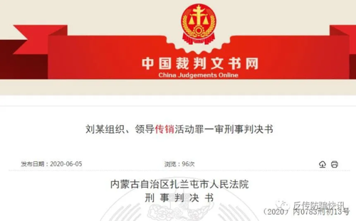 該院最終綜合全案案情,結(jié)合劉某在犯罪過程中所起的作用、地位及情節(jié),考慮本案對社會的危害性,依照相關(guān)法律的規(guī)定,以組織、領(lǐng)導傳銷活動罪,判處劉某有期徒刑三年,宣告緩刑五年,并處罰金2萬元。[此文來源反傳防騙快訊,版權(quán)歸原作者,如侵權(quán),請聯(lián)系刪除]