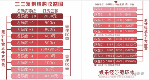 活躍度1向第二層上線打賞50元后,即可晉升為活躍度2,成為活躍度2后,就可以拿到下級第二層所有會員的50元賞金;活躍度2向第二層上線打賞100元后,即可晉升為活躍度3,活躍度3可以獲得自己下面第三層所有會員100元的賞金。以此類推無限代發(fā)展,也就是說,你在“火趣小視頻”的活躍度是幾級,就可以拿下面幾層的打賞金。