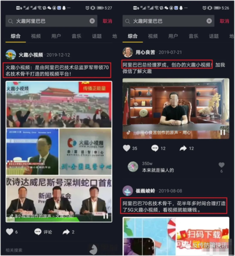 該公告表示,“火趣小視頻”應(yīng)用中傳播的一個名為“阿里巴巴技術(shù)支持,阿里火趣董事長、創(chuàng)始人羅成談阿里火趣小視頻”的視頻是虛假內(nèi)容,“火趣小視頻”并非獲得“阿里巴巴技術(shù)支持”且與阿里巴巴集團(tuán)并無合作或關(guān)聯(lián)關(guān)系。