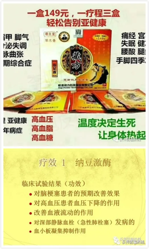 此外還有納豆激酶,宣稱是日本全進口產品,效果極好。納豆中含有的納豆蛋白降解肽可調節(jié)血壓,納豆木質素可以調節(jié)血脂,被譽為“血栓的克星”“溶栓明星”,長期服用可以溶栓防栓、防止腦中風、心梗等。還有雄錦膠囊可以腎臟排毒、韻纖暢可以腸道排毒、韻茗泰可以預防癌癥、除甲醛韻醛潔可以凈化空氣等產品可以防病治病。