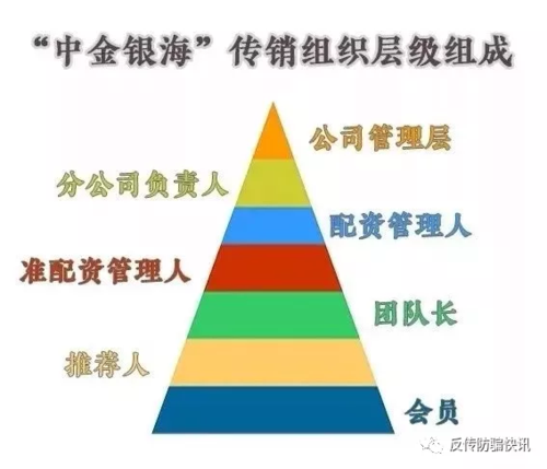 經(jīng)調(diào)查,中金銀海公司不僅沒有實(shí)體投資項(xiàng)目,在公司內(nèi)部大廳墻上所懸掛的各式各樣的金融類證書也屬偽造,目的只是為了給前來公司的人員營(yíng)造出合法正規(guī)的企業(yè)印象,以此獲取投資者的信任,該公司實(shí)質(zhì)上就是一個(gè)進(jìn)行傳銷活動(dòng)的空殼公司,以拉人頭發(fā)展下線入會(huì)投資的運(yùn)營(yíng)模式的龐氏騙局。
