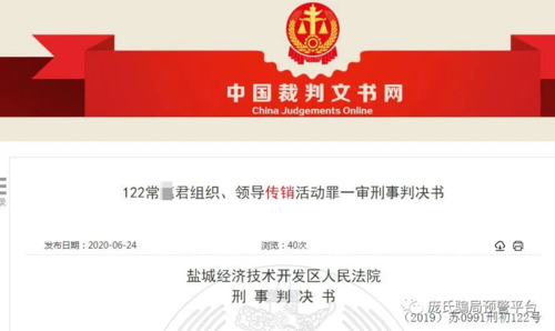 6月24日,鹽城經濟技術開發(fā)區(qū)人民法院對外披露了一起“亞元交易平臺”網絡傳銷案。北京市豐臺區(qū)女子常某君因發(fā)展下線會員近4萬人,業(yè)績達1.44億余元,非法獲利300余萬元,犯組織、領導傳銷活動罪,被判處有期徒刑,并處罰金。