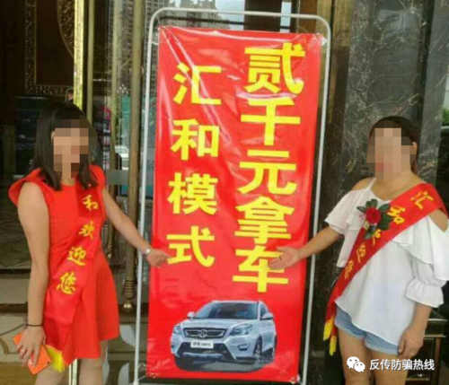 “匯和模式”是孫某柱提出來的。具體就是交2.2萬元購車預(yù)付款成為公司的初、中級(jí)客戶,如果客戶的后臺(tái)收益達(dá)到車價(jià)的25%,就可以把價(jià)值10萬元的車開走,尾款由后臺(tái)收益來支付。