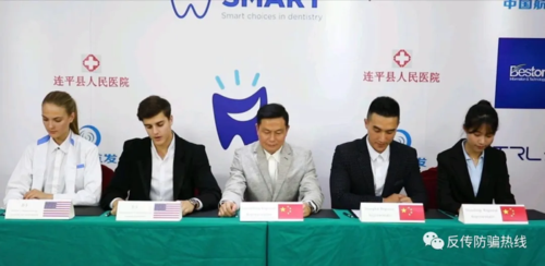 群宣傳資料 Dental Smart 項目方主營牙科門店連鎖護(hù)理,主要地區(qū)是在美國南美洲,現(xiàn)已有300 家連鎖店,DentalSmart對外宣稱與上海百事通、山東開創(chuàng)集團(tuán)、連平縣醫(yī)院、華西集團(tuán)有限公司,中國移動等多個知名企業(yè)達(dá)成合作共識,以達(dá)到開創(chuàng)牙科智能5G線上就醫(yī)新時代的目的。