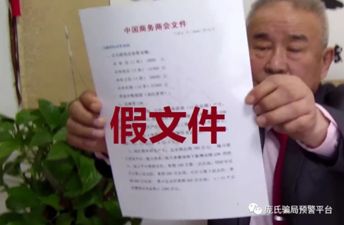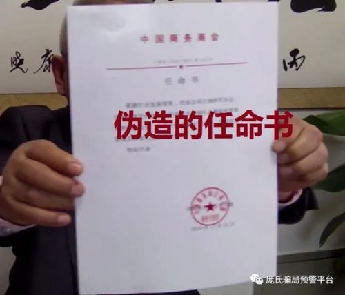 值得注意的是,在視頻最后,這位“萬(wàn)將軍”還曬出了一份“任命書(shū)”和“中國(guó)商務(wù)商會(huì)文件”。實(shí)際上,上述兩個(gè)文件都是偽造的,因?yàn)檫@位“萬(wàn)將軍”本身就是“中綠”傳銷(xiāo)骨干之一。至今網(wǎng)上還有多段關(guān)于“萬(wàn)將軍”鼓吹秦皇島“中綠”傳銷(xiāo)的視頻在流傳。