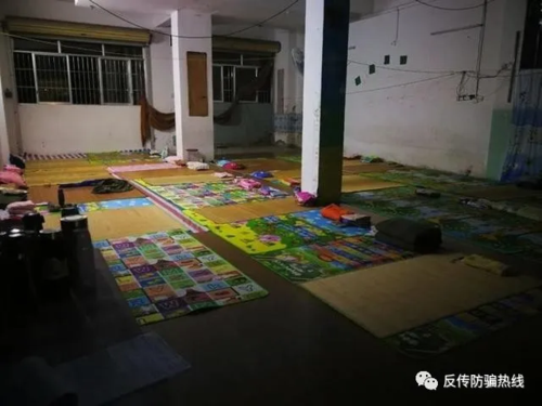 民警在現(xiàn)場(chǎng)發(fā)現(xiàn),該組織不僅有嚴(yán)格的課堂紀(jì)律要求還安排有專職人員進(jìn)行督導(dǎo)。在教室旁另外的房間,地上滿滿地?cái)[放著草席、水桶、洗漱用品和生活用品。