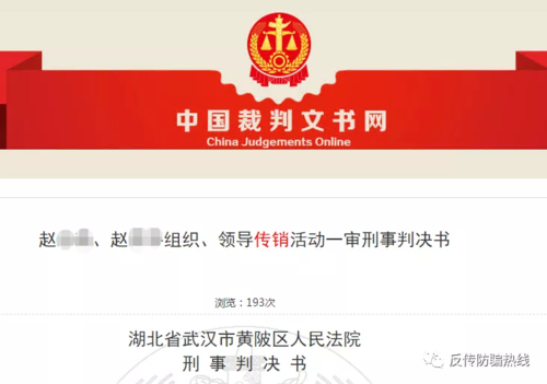 7月14日,李旭反傳銷團隊獲悉,武漢黃陂區(qū)人民檢察院對外披露一起傳銷案件,趙某南一家三口犯組織、領導傳銷活動罪,判處有期徒刑七年至五年,并處罰金的刑罰。