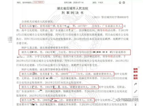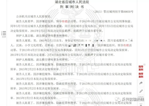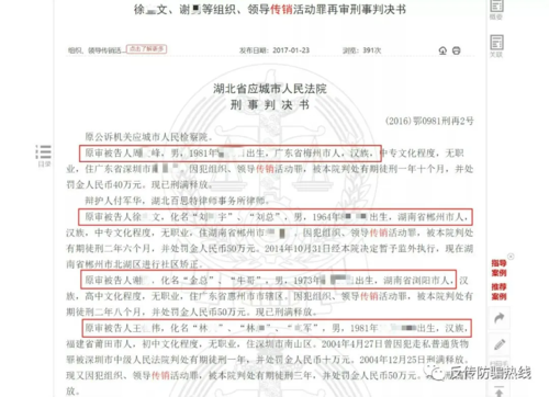 發(fā)表時(shí)間:2020-07-16 19:16作者:李旭反傳銷團(tuán)隊(duì)來源:李旭反傳銷團(tuán)隊(duì) 7月14日,中國裁判文書網(wǎng)公示了兩則組織、領(lǐng)導(dǎo)傳銷罪的刑事判決書,李旭反傳銷團(tuán)隊(duì)了解到,其實(shí)這起判決在2015年就已經(jīng)公示,只不過這一次公示,直接公開了涉嫌傳銷人員的相關(guān)信息,不再以某某來代替。