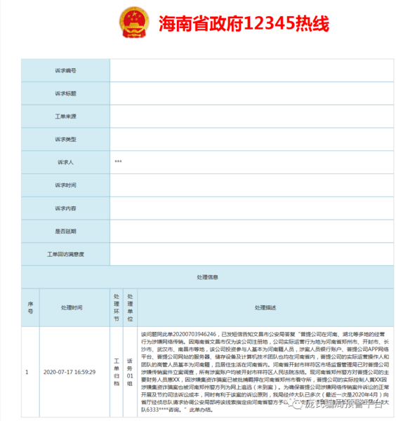 發(fā)表時間:2020-07-19 20:11作者:龐氏騙局預(yù)警平臺來源:龐氏騙局預(yù)警平臺 7月3日,有群眾通過海南省政府12345熱線平臺咨詢普提公司案件的情況。7月17日,相關(guān)部門回復(fù)稱,普提公司因涉嫌傳銷已經(jīng)被河南省開封市祥符區(qū)市場監(jiān)督管理局立案調(diào)查,鄭州警方以涉嫌集資詐騙對公司的主要財務(wù)人員惠某某批捕羈押,實際控制人黃XX也被鄭州警方列為網(wǎng)上追逃。以下是相關(guān)部門回復(fù)的全文: 該問題同此單20200703946246,已發(fā)短信告知文昌市公安局答復(fù):普提公司在河南、湖北等多地的經(jīng)營行為涉嫌網(wǎng)絡(luò)傳銷。因海南省文昌市僅為該公司注冊地,公司實際運營行為地為河南省鄭州市、開封市、長沙市、武漢市、南昌市等地。 該公司投資參與人基本為河南籍人員,涉案人員銀行賬戶、菩提公司APP網(wǎng)絡(luò)平臺、菩提公司網(wǎng)站的服務(wù)器、儲存設(shè)備及計算機(jī)技術(shù)團(tuán)隊也均在河南省內(nèi),菩提公司的實際運營操作人和團(tuán)隊的高管人員基本為河南籍,且居住生活在河南省內(nèi)。 河南省開封市祥符區(qū)市場監(jiān)督管理局已對菩提公司涉嫌傳銷案件立案調(diào)查,所有涉案賬戶均被開封市祥符區(qū)人民法院凍結(jié)?,F(xiàn)河南省鄭州警方對菩提公司的主要財務(wù)人員惠XX,因涉嫌集資詐騙案已被批捕羈押在河南省鄭州市看守所,菩提公司的實際控制人黃XX因涉嫌集資詐騙案也被河南鄭州警方列為網(wǎng)上追逃(未到案)。 為確保菩提公司涉嫌網(wǎng)絡(luò)傳銷案件訴訟的正常開展及節(jié)約司法訴訟成本,同時有利于該案的訴訟原則,我局經(jīng)偵大隊已多次(最近一次是2020年4月)向省廳經(jīng)偵總隊請求協(xié)調(diào)公安局部將該線索指定由河南省警方予以并案偵查。詳情請直接致電市公安局經(jīng)偵大隊咨詢。