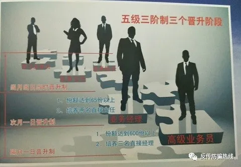三晉則為從實習(xí)業(yè)務(wù)員到高級業(yè)務(wù)員晉升的三個階段,第一階段為實習(xí)業(yè)務(wù)員到業(yè)務(wù)主任的晉升,第二階段為業(yè)務(wù)主任到業(yè)務(wù)經(jīng)理的晉升,第三階段為業(yè)務(wù)經(jīng)理到高級業(yè)務(wù)員的晉升。在南昌地區(qū)新加入成員一般購買21份份額,直接升為業(yè)務(wù)主任,第一份為3800元,其中3300元為份額費,500元為商品費,從第二份開始每份都是3300元,即購買21份份額則需繳納69800元。